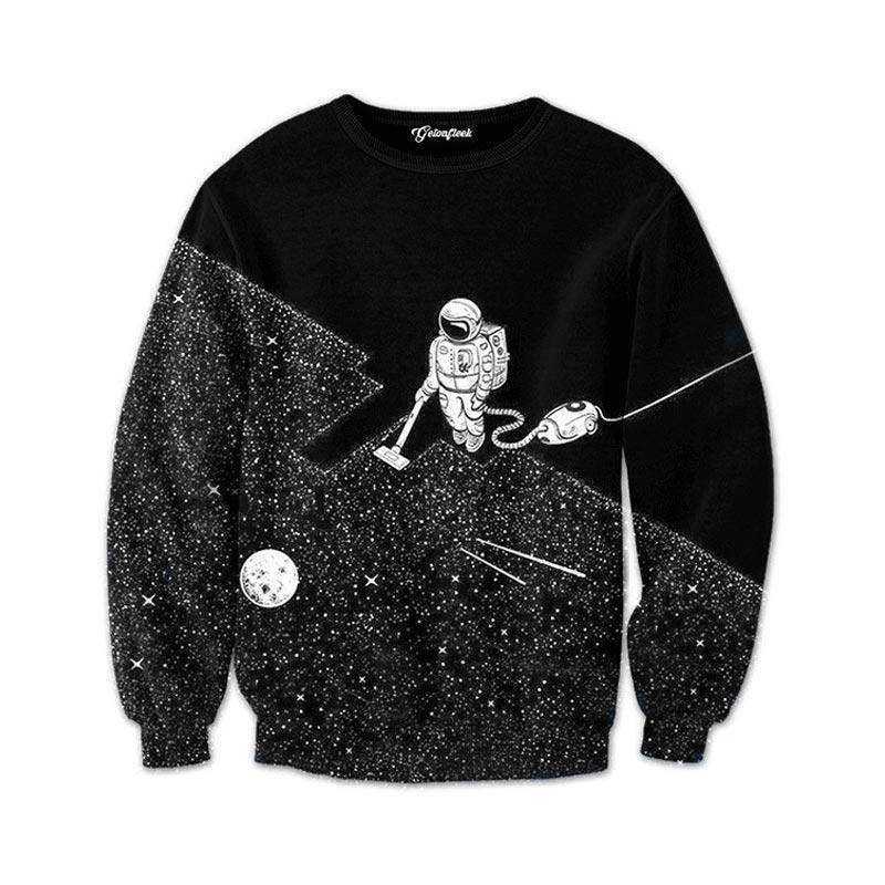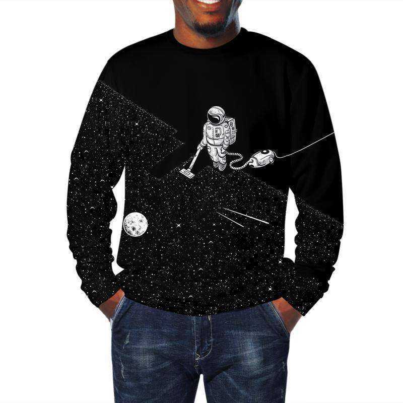 Cloud style Space Vacuum Cleaner Robot 3D Print Sweatshirt Hoody For Men