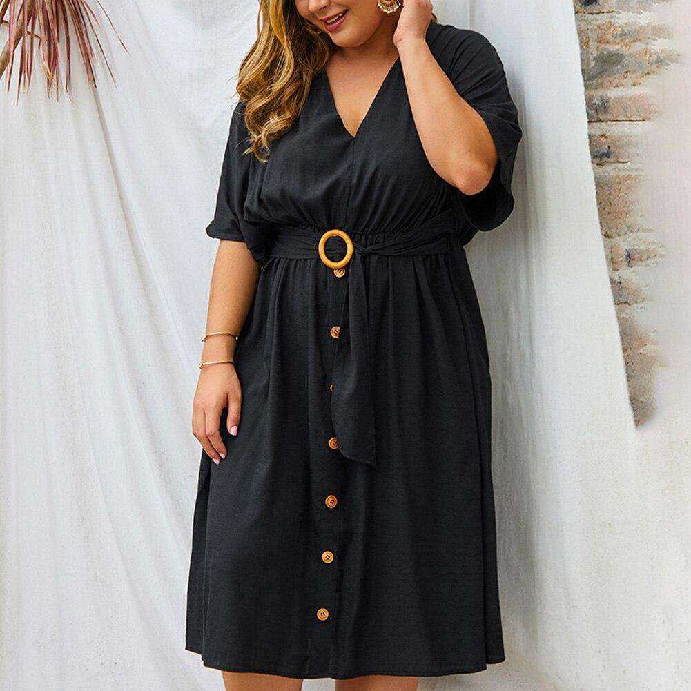 Grab your Discounted Women Autumn Plus Size 4XL V Neck Pure Color Full Sleeve Dress while the New Product LAUNCH DISCOUNT is on. Once the sale countdown timer is over, we will be increasing the price back up to $67.99-$69.99. This is absolutely a great gift!