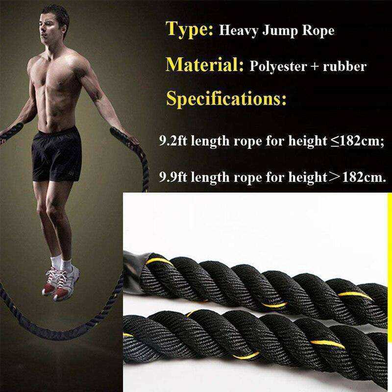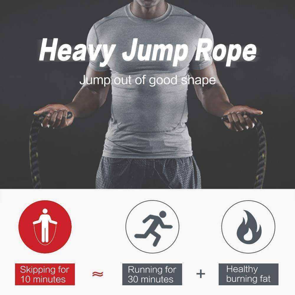 Heavy Jump Rope - Weighted jump rope is heavier than standard jump rope, it can help you to exert more energy and build your muscle. It's a great tool to improve your strength and exercise or physical fitness training.