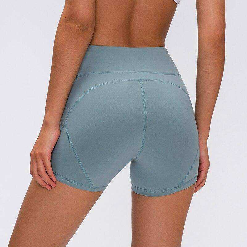 High Waisted Smooth Anti-sweat Plain Athletic Yoga Shorts with Two Side Pocket