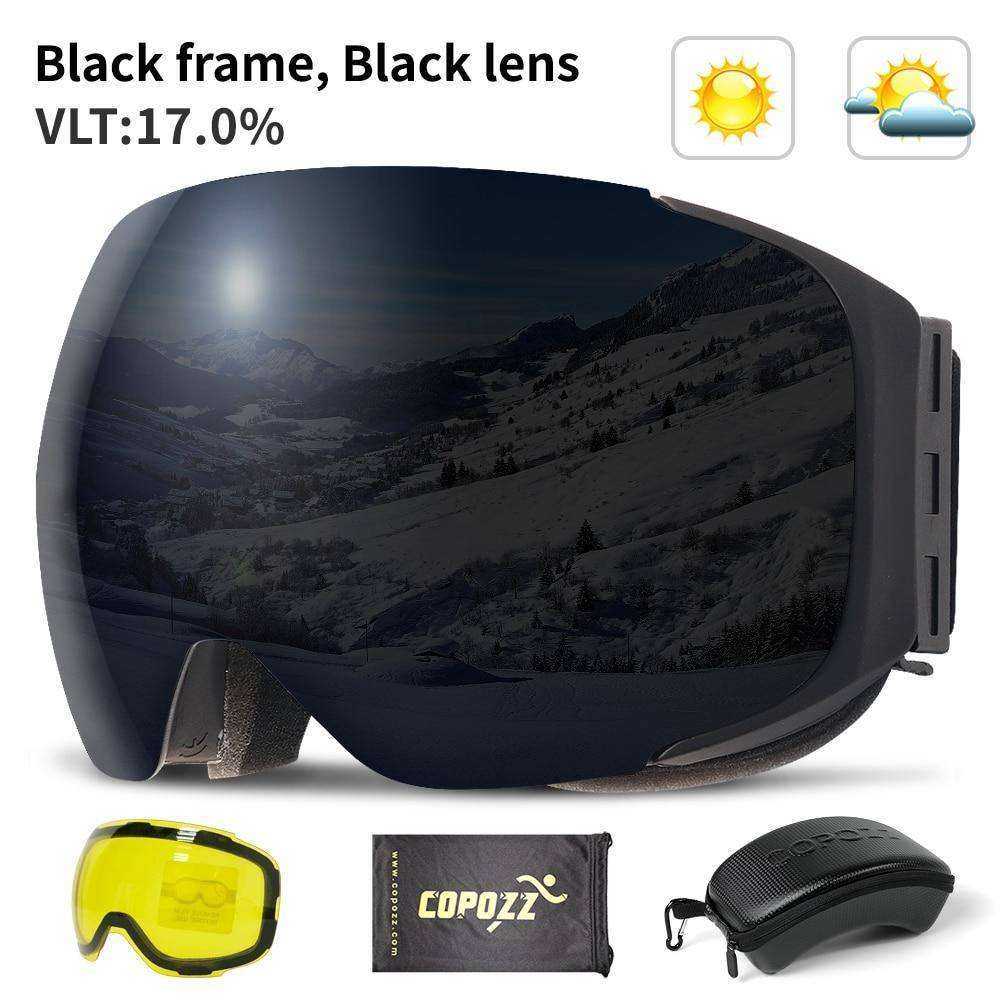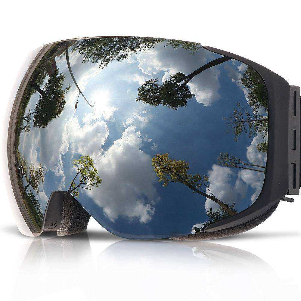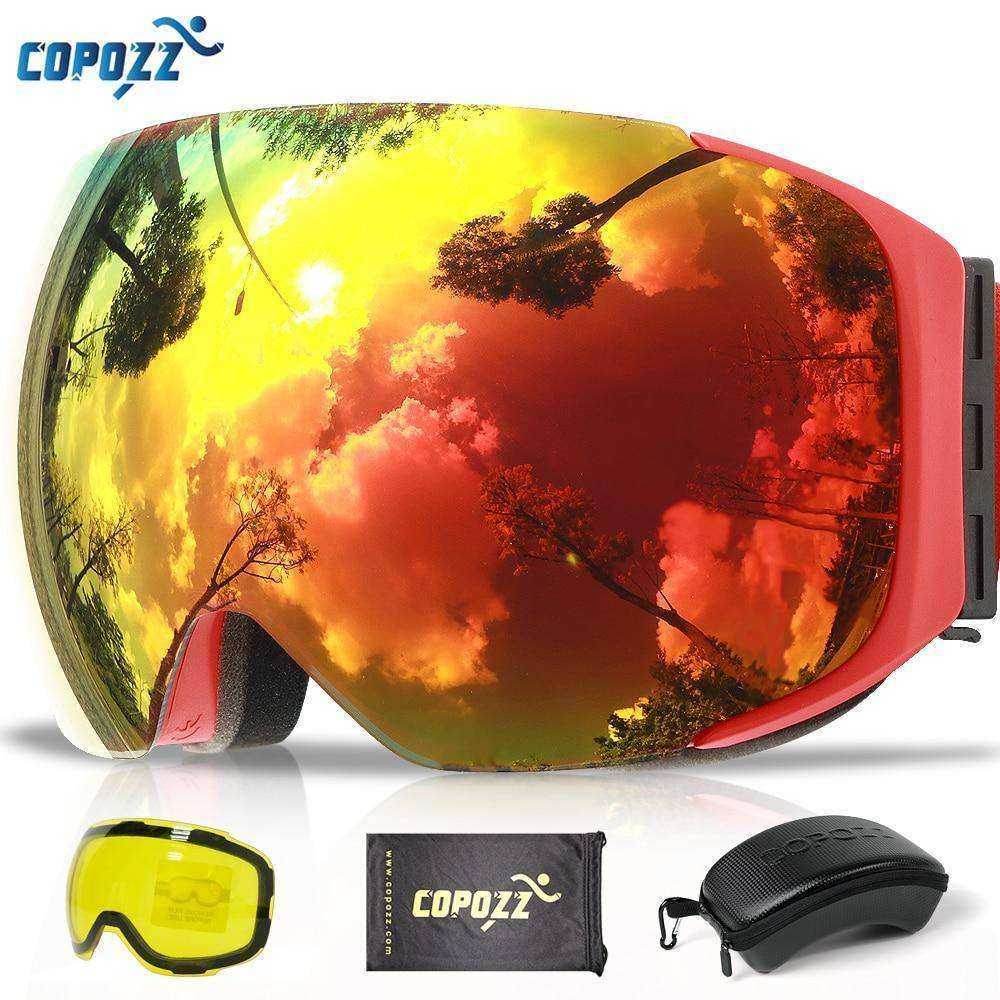 - Due to the strong sunlight, reflected light from snow mountain plus cold wind that stimulate the eyes, we suggest you choose a security professional ski goggles while the brand "COPOZZ" is your best choice. COPOZZ ski goggle is more fit for your face and can prevent your eyes from the heavy wind. The lens is made from imported material and its mirrored coating is hardened, scratch-resistant and abrasion-proof. The goggles are 100% Anti-UV, play a key role in eyes protection.