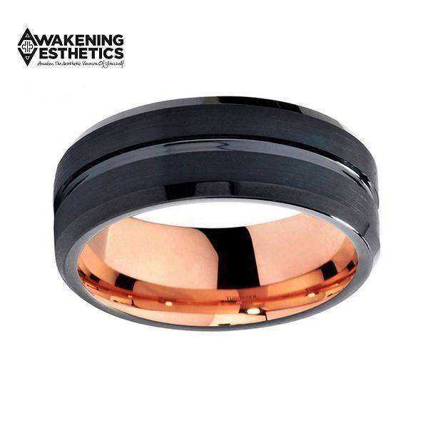 Black Brushed Center Cut & Rose Gold Tungsten Ring