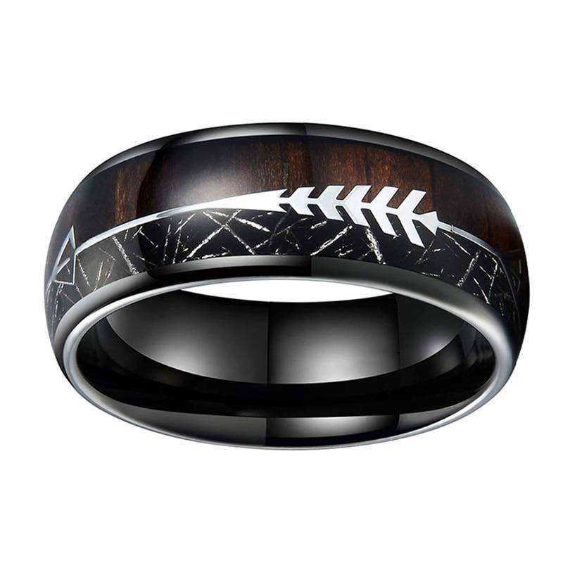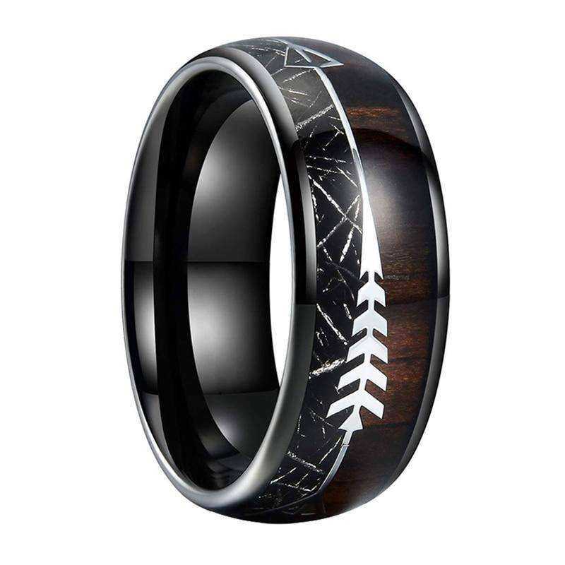 Grab your Discounted Black Tungsten Ring Wedding Band With Arrow Wood And Black Meteorite Inlay For Men while the New Product LAUNCH DISCOUNT is on. Once the sale countdown timer is over, we will be increasing the price back up to $215.60 This is absolutely a great gift!