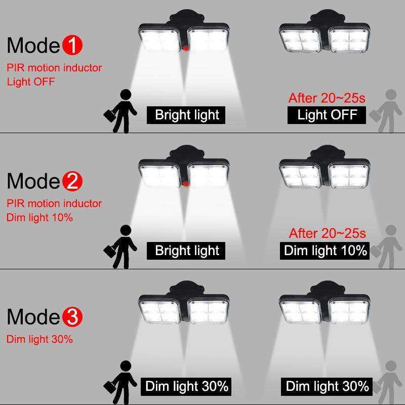 Mode 2: human body induction + low light mode (the light will be on when people pass by, and the light will be on again 15 seconds after people leave)