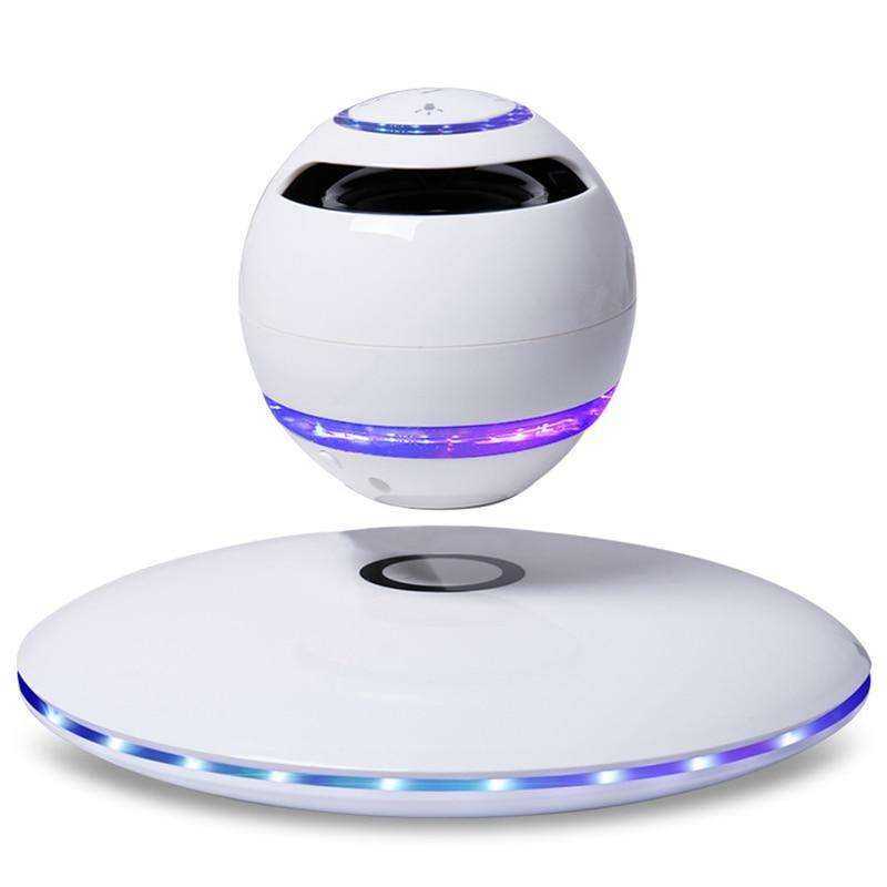 - The speaker orb is floating and spinning above a magnetic base without touching any other object, it works with zero-loss audio streaming and produces a better sound.