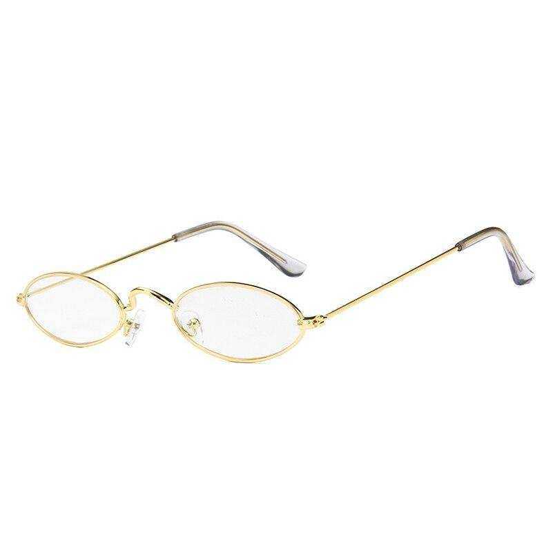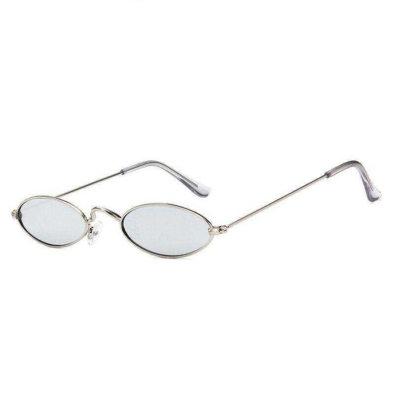 Small Oval Sunglasses Vintage Tiny Metal Frame Flat Lens