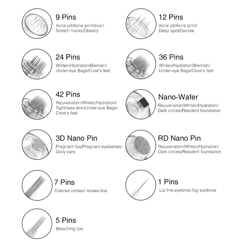 • The 12 pen microneedle adopts nano-level electric shock and Micro-needle vibrates high frequency to open the stratum corneum of the skin without touching the dermis layer whick can make the skin absorb effectively