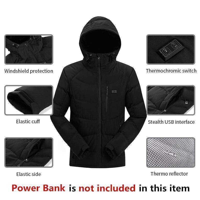 New Winter Outdoor USB Infrared Heating Hooded Jacket For Men