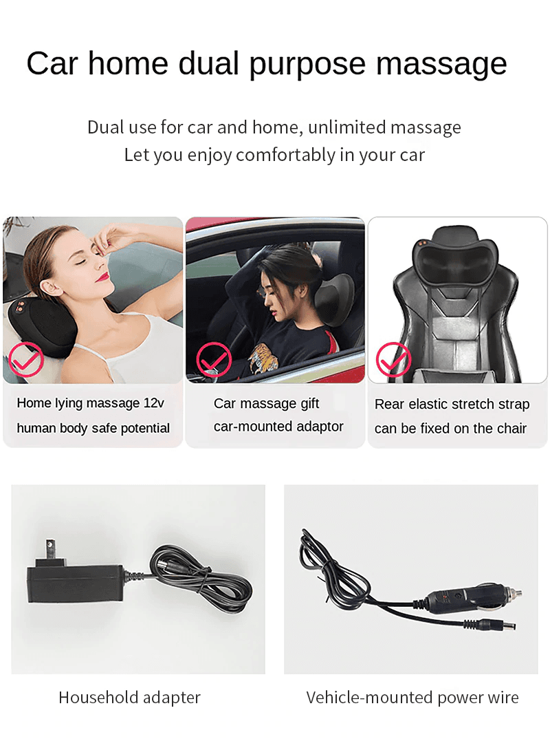 • [Ultra Portable] The adjustable elastic adhesive straps fastener on the back is easy to use, helping you tip up the massager pillow securely on a chair or car seat. The PU leather is in good quality, which feels soft and comfortable. With AC adapter and FREE Car adapter, adjustable handle straps which allows you not only enjoy deep kneading massage in your home and office, but also in your car.