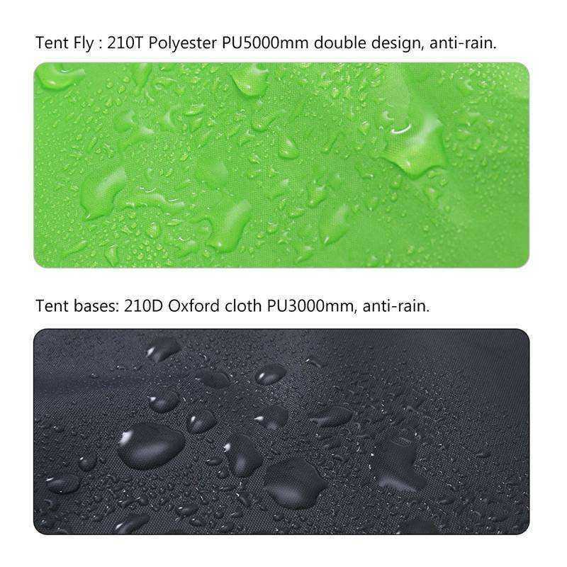 - Durable material: Flysheet: 210T polyester cloth + PU5000mm coating; Inner Tent: 190T polyester cloth; Bottom: 210D Oxford Cloth + PU3000mm Coating.