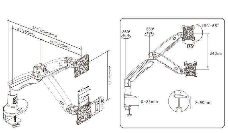 VESA 75x75 to 100x100mm interface.
