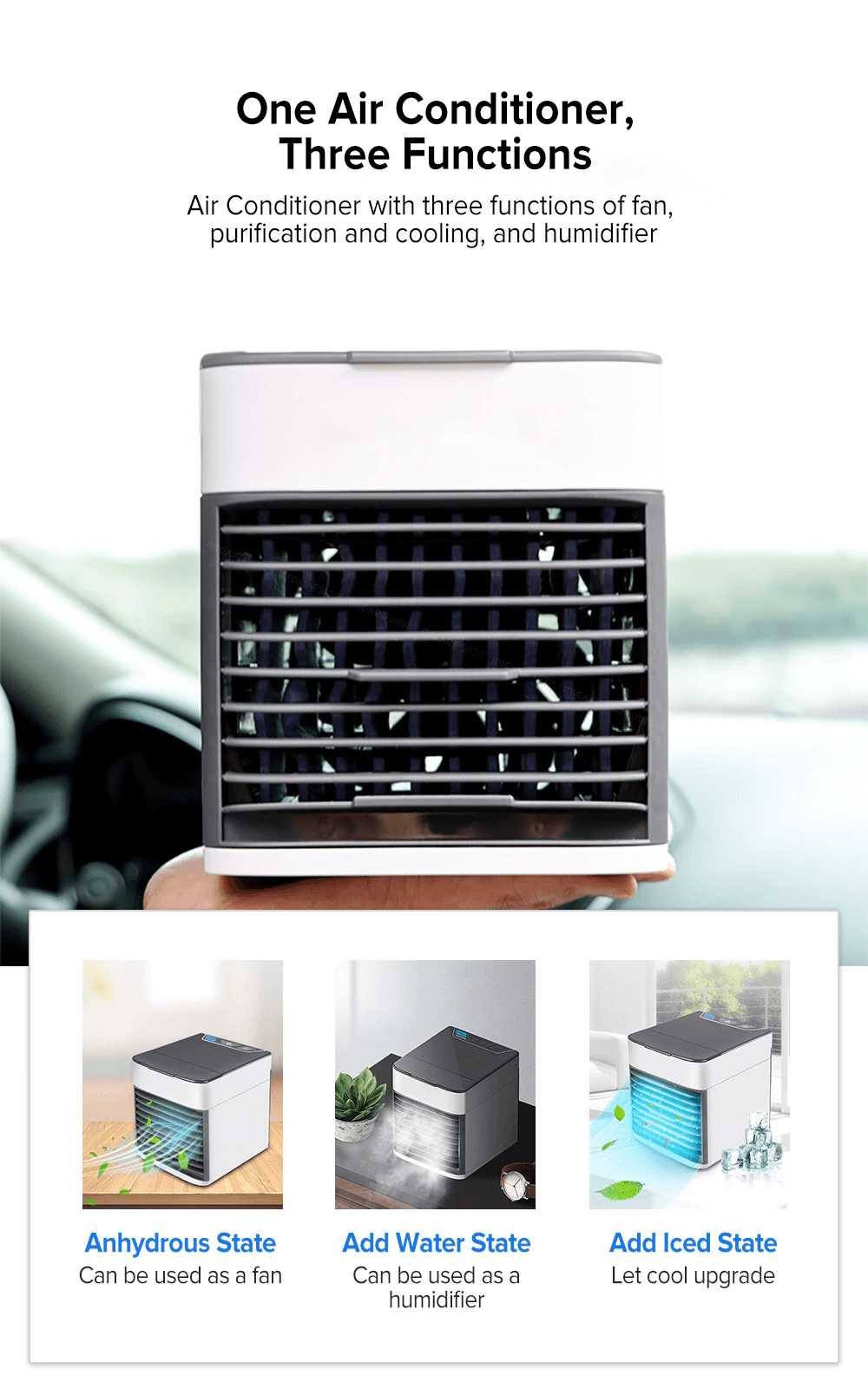 This little air-conditioning fan is really amazing! I bought it and put it on the desk in the office, You can add ice to the fan to make its wind cooler.You will see a water-cooled spray, it is very cold, the wind is strong, I will buy and some can be left in various rooms around my house.