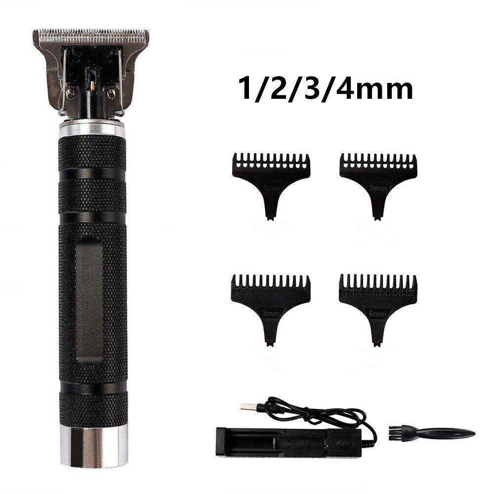 • ✂Users Friendly Design✂: The device body with anti-skid patterns, one bottom button for instant on and off. Ergonomic design, all-metal body, stylish black rhombus texture, Exquisite and compact for comfortable grip. Hanging T-Blades make you shave and cut freely, no matter from which direction. suitable for oil head, carving, vintage hair style, baldhead.