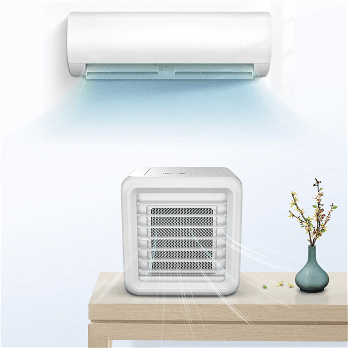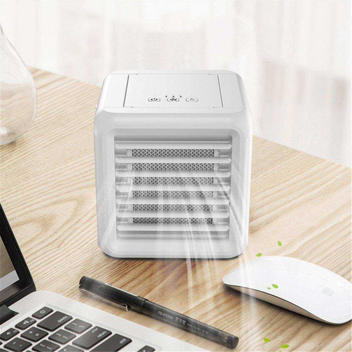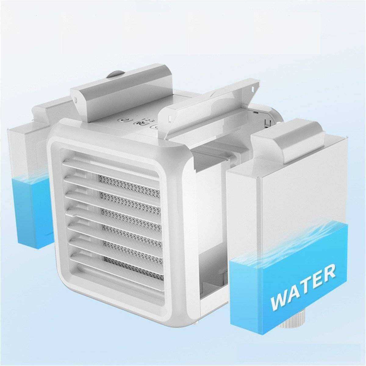 • This compact beast is a perfect personal air cooler that allows you to create your own micro climate. This smart new solution for the cooling market provides a device that actually cools the air, using the size and power consumption of a small fan.