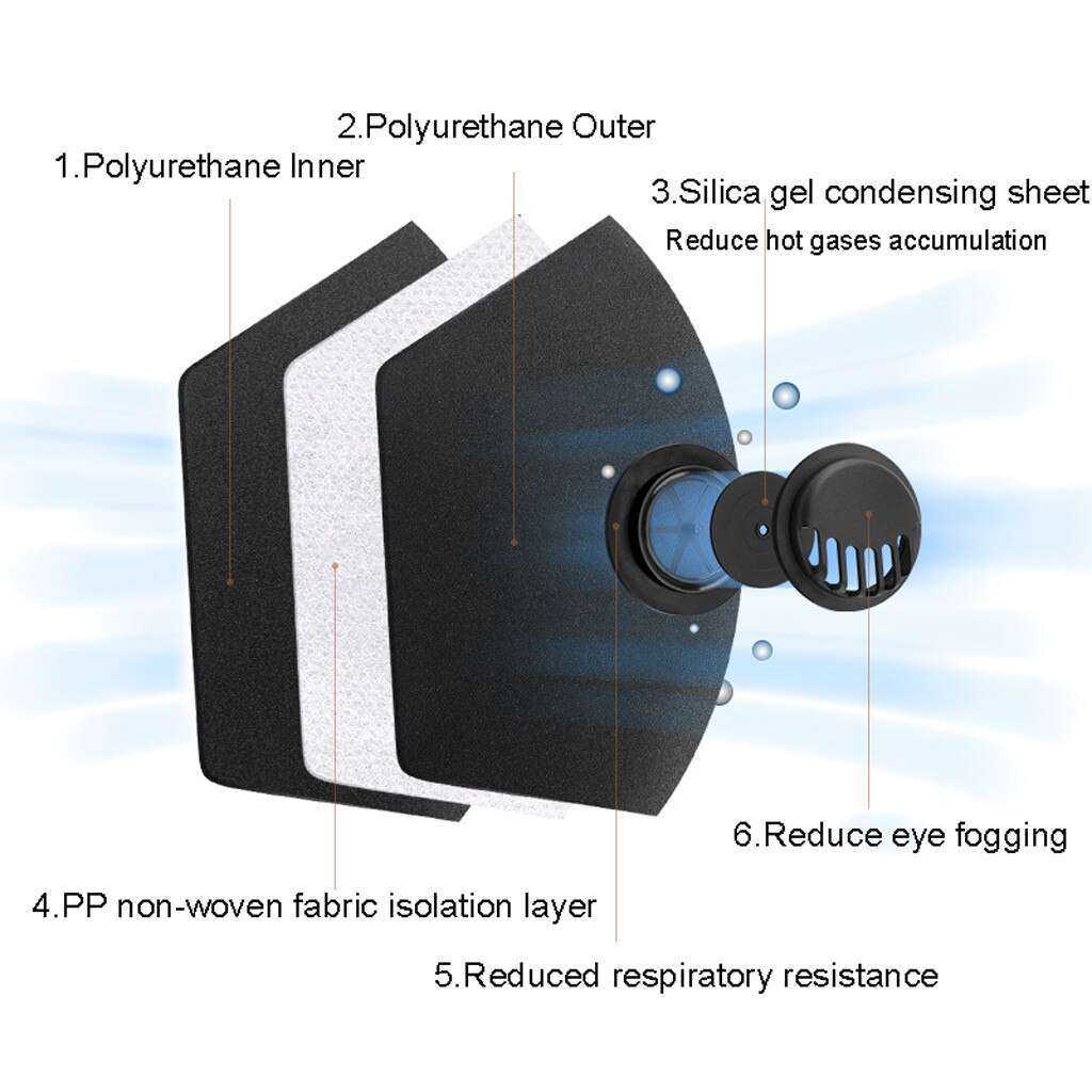 • Large diameter breathing valve, reduces respiratory resistance and fogging.