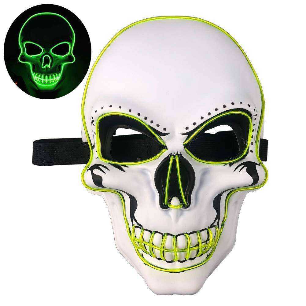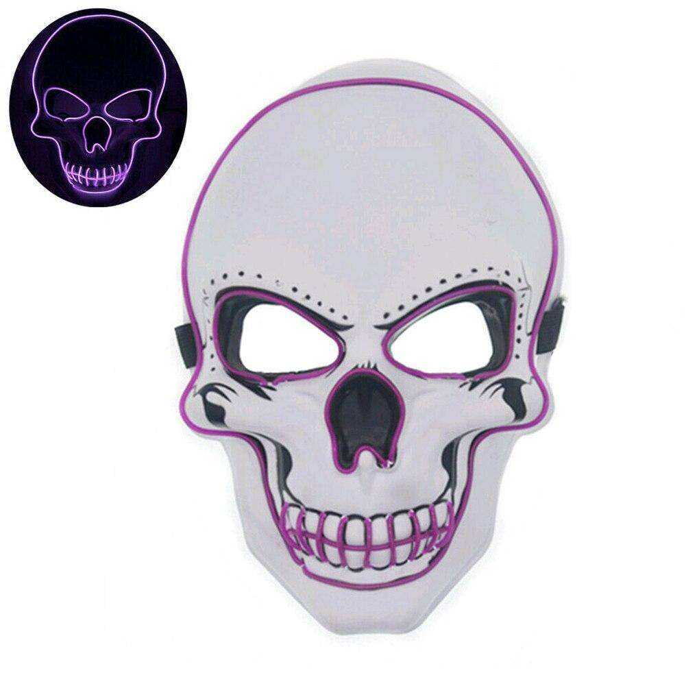 Halloween Skeleton Skull Mask LED Glow Scary EL-Wire Cosplay Costume