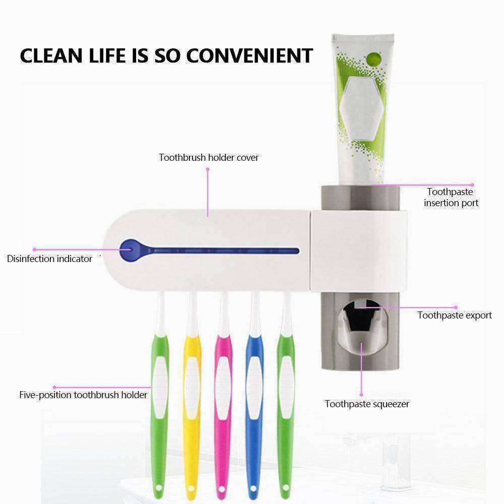 - 3-in-1 function Including toothbrush Holder , toothpaste Dispenser, toothbrush sterilizer.