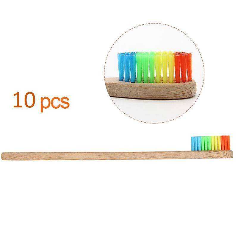 Aesthetic Soft Rainbow Head Wooden Bamboo Toothbrush