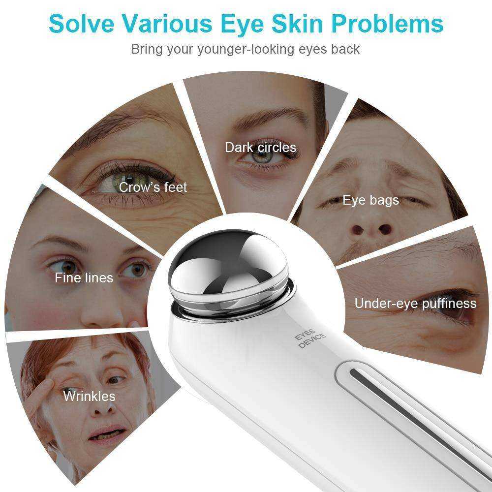 - The device is designed to help massage and lift skin around the eyes, improve the absorption of skin care products, help reduce under-eye puffiness / eye bags / dark circles / crow's feet / fine lines / wrinkles.
