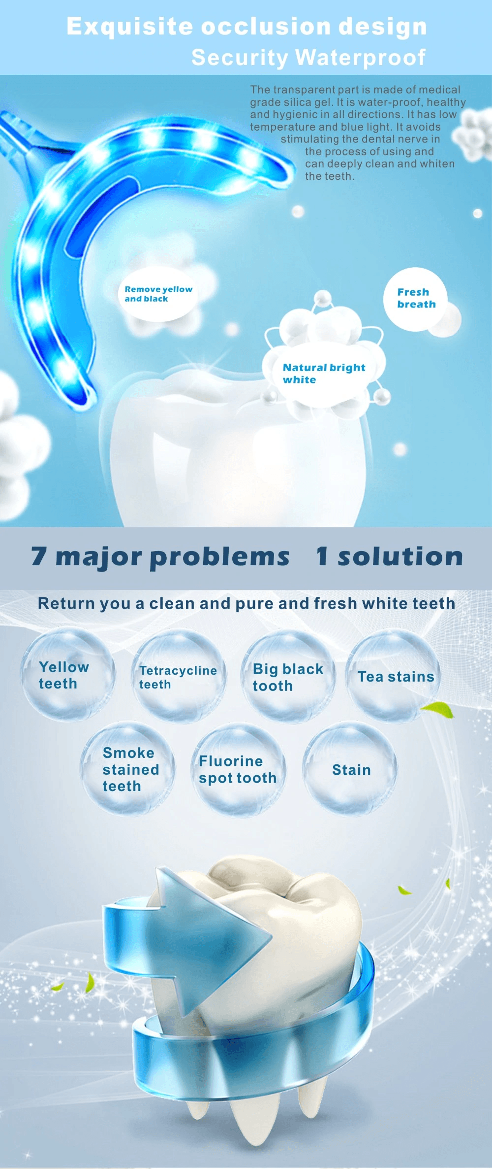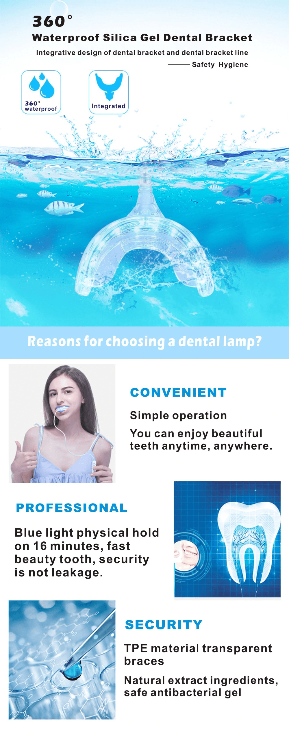 This kit Contains the newest Teeth Whitening Cold Light Mouth Tray