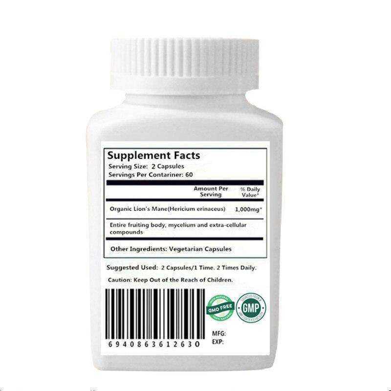 Lions Mane Mushroom Capsules Brain Health Neuron Growth & Immune System Support
