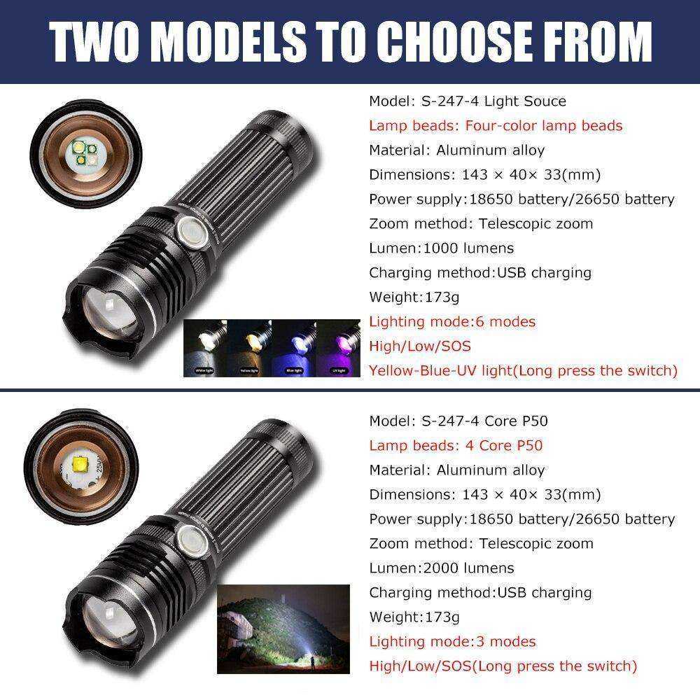 Rechargeable LED Flashlight With 4 Core P50 and 4 Colors LED Chip