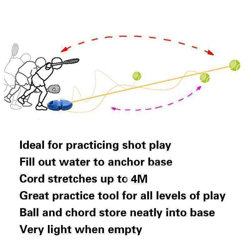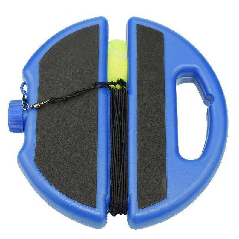 - The basis of the Original Tennis Training Tool is a round disc with an anti-slip layer on the bottom. When placed on the ground, it will not shift quickly during use. The base can also be used to store the tennis balls and to roll the cord around when not in use. The base has a weight of 1380 grams. All this makes the Tennis Trainer a compact device that is easy to store.