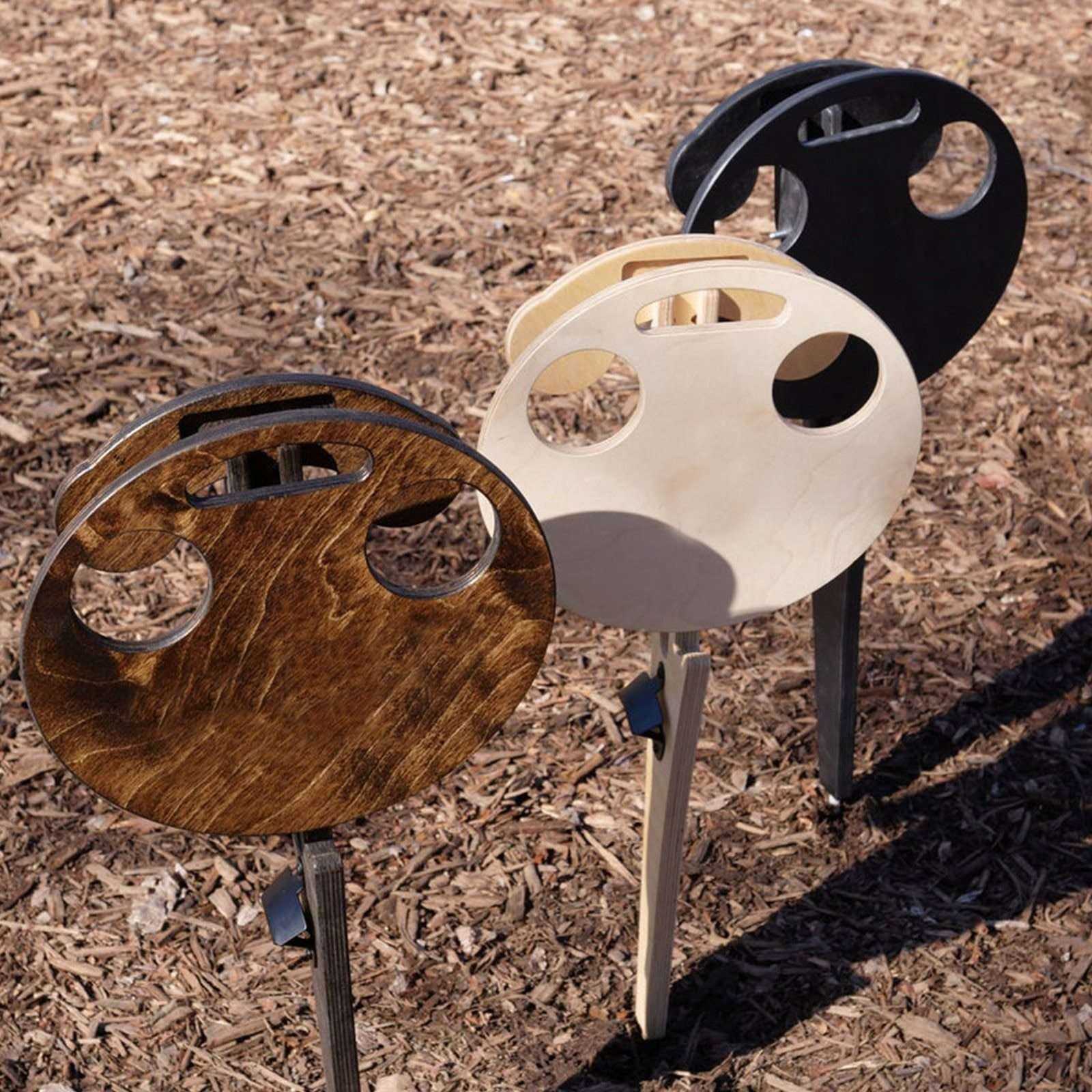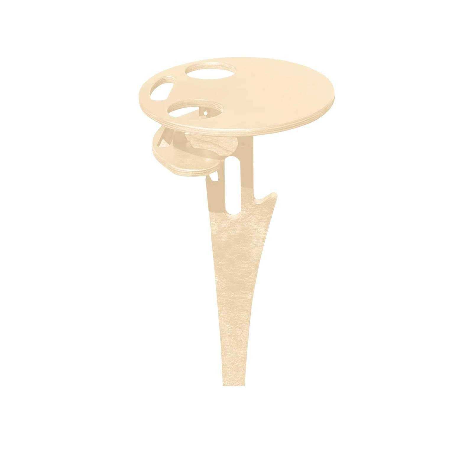 - The fiberglass rod is durable and makes staking into the dirt, sand, or grass a breeze (you can even put it into a planter on your deck or balcony). The top has space for two beer bottles, pint glasses, cups, soda cans, bottle of water, etc., and plate of your favorite snacks.
