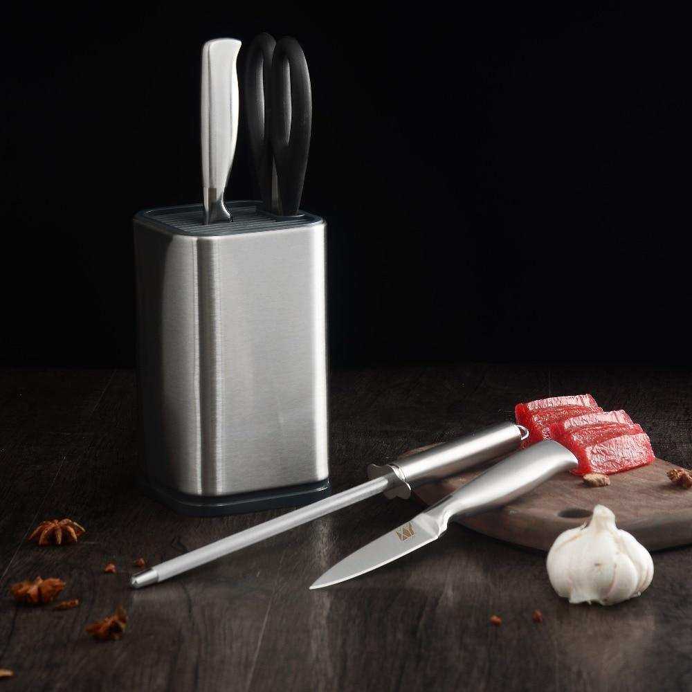 - Made of food-grade 304 stainless steel. In the kitchen, where water and ingredients are often contacted with it, a practical stainless steel knife holder is necessary. It will last for a long time and no need to spend much time or money on it.