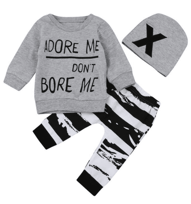 Adore Me Don't Bore Me 3pcs Baby Toddler Outfit Hat