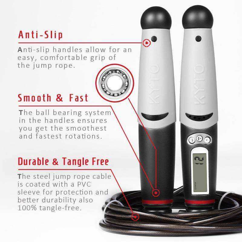 • Anti-Slip---Anti-slip handles allow for an easy, comfortable grip of the jump rope.