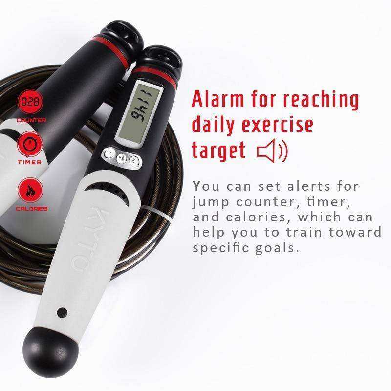 • Alarm for reaching daily exercise target---You can set alerts for jump counter, timer, and calories, which can help you to train toward specific goals.
