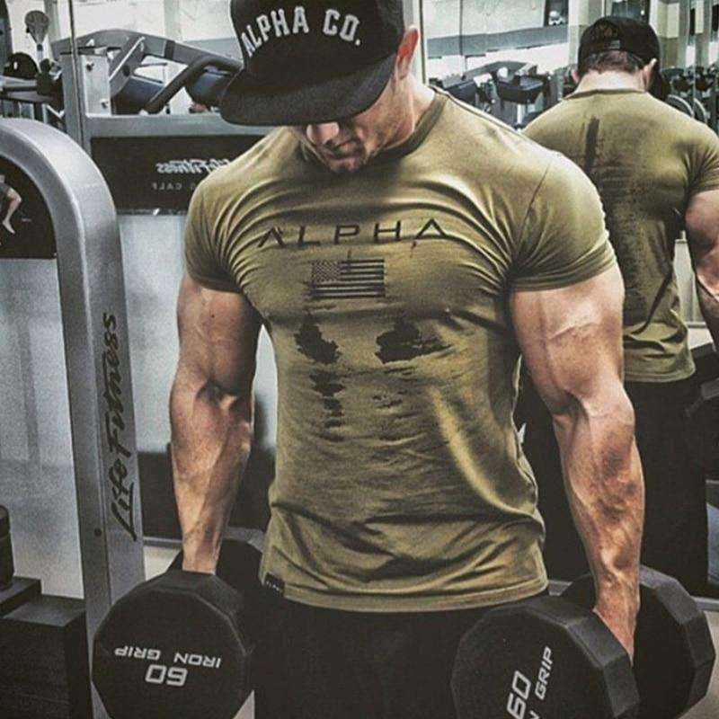 Sports Fitness Fashion Letter Printing Men's Short Sleeve T-shirt