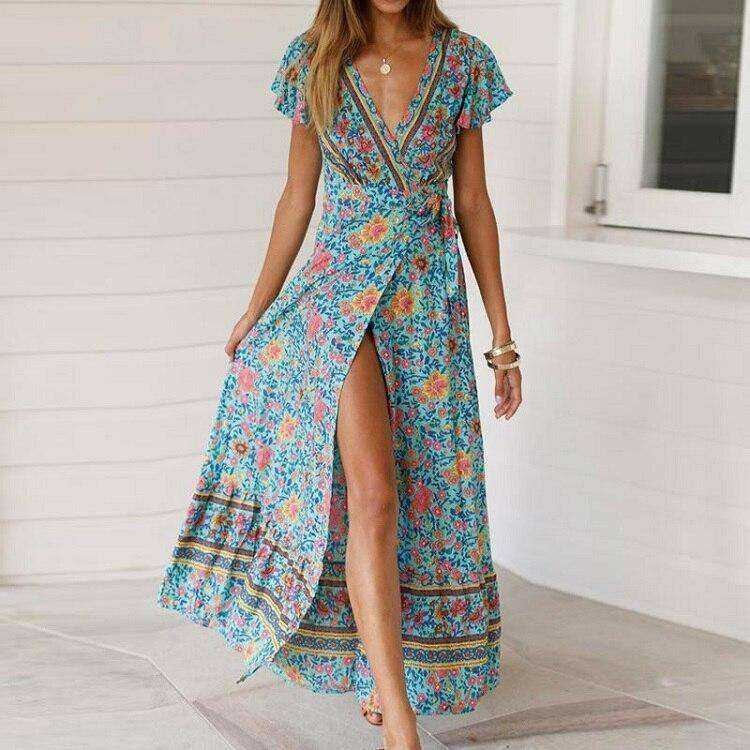 Grab your Discounted Floral Print Boho Long Sleeve Dress Deep V Neck Split Maxi Sundress while the New Product LAUNCH DISCOUNT is on. Once the sale countdown timer is over, we will be increasing the price back up to $69.99. This is absolutely a great gift!