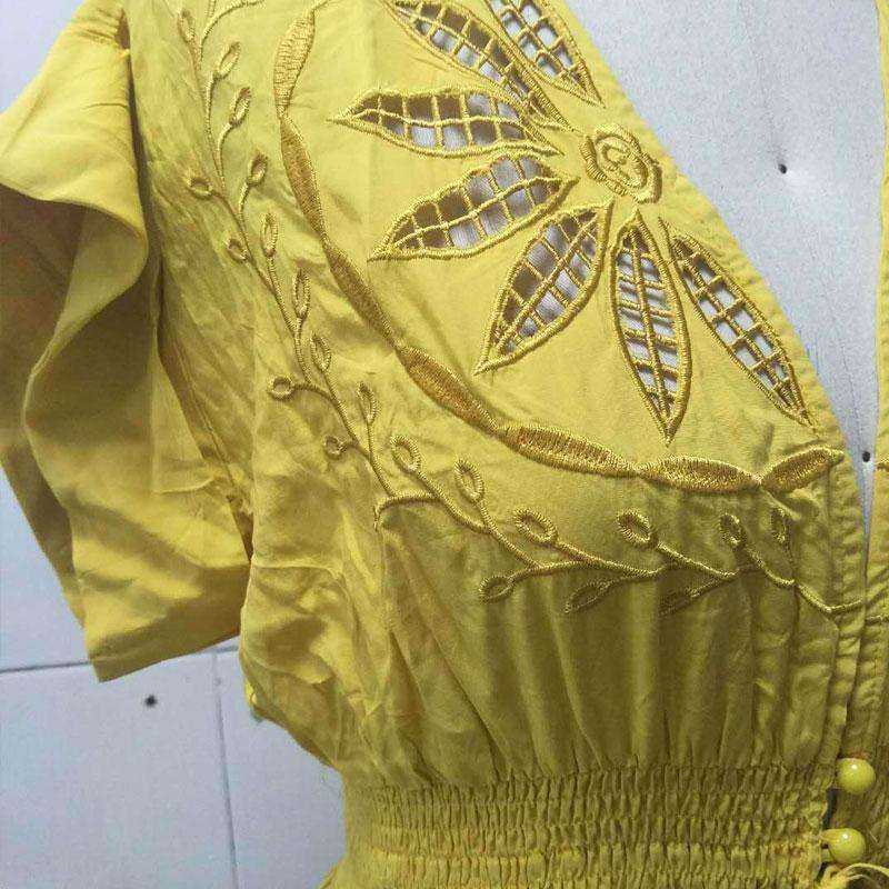 1x Embroidery Lace Up V Neck Boho Maxi Long Dress