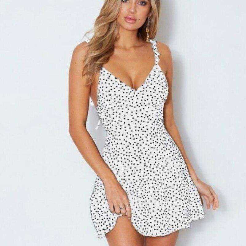 Summer Sexy Spaghetti Strap Dot Print Backless Above Knee Mini Ladies Dress