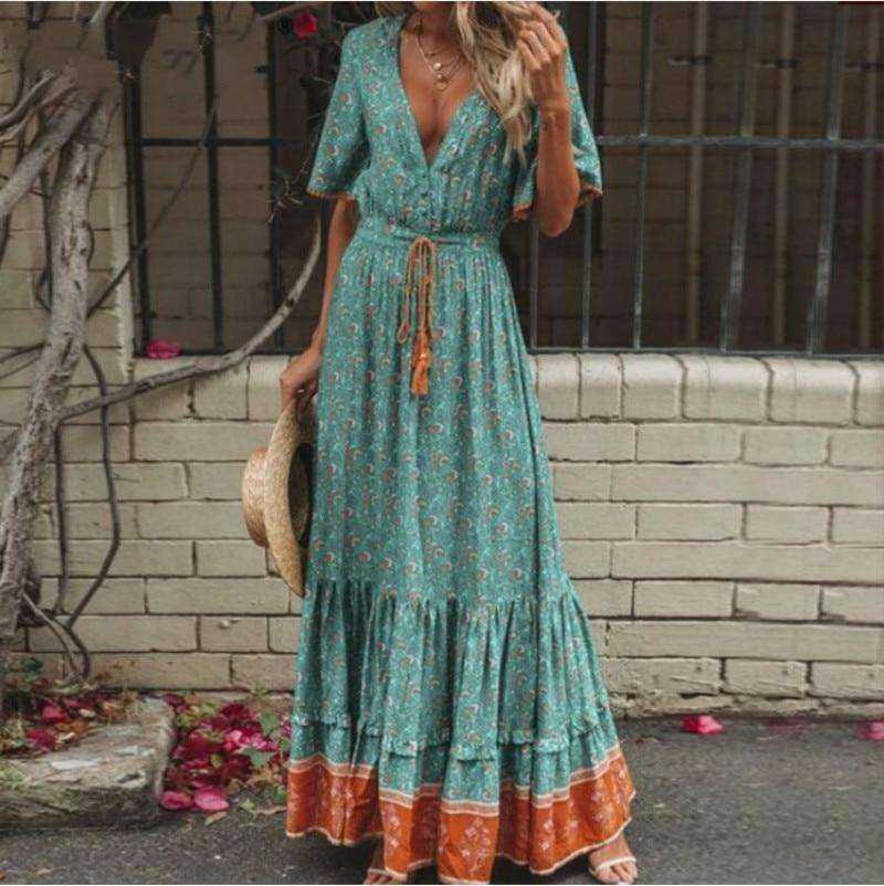 Summer V-Neck Bohemian Maxi Long Dress