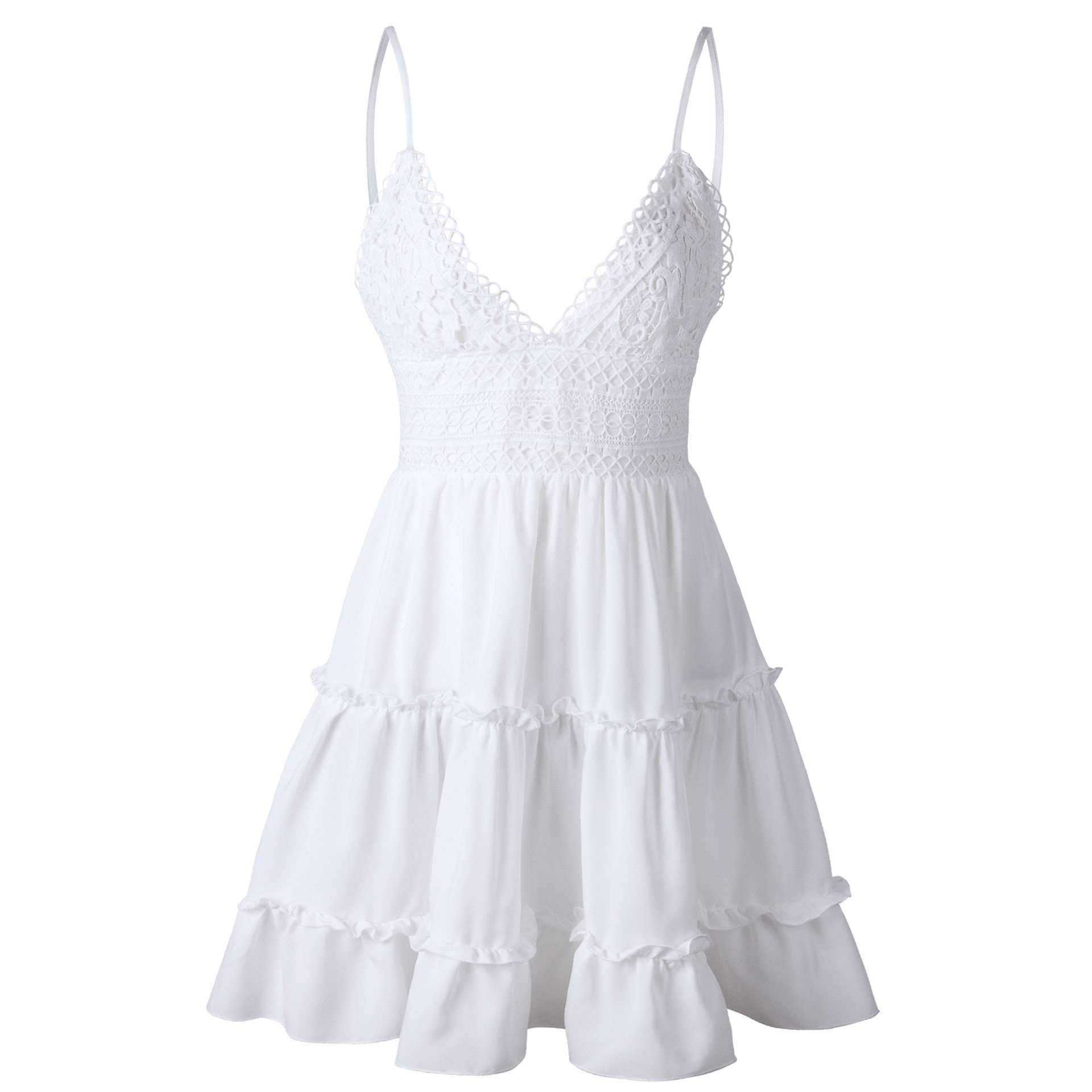 V Neck Lace Sleeveless Spaghetti Strap Dress