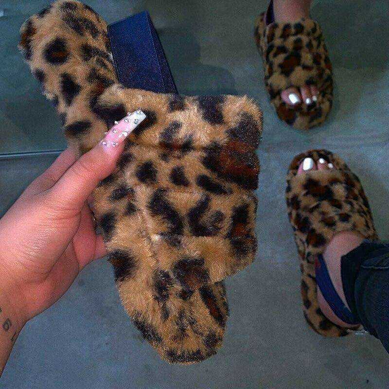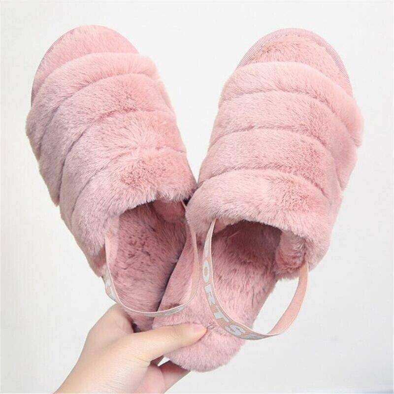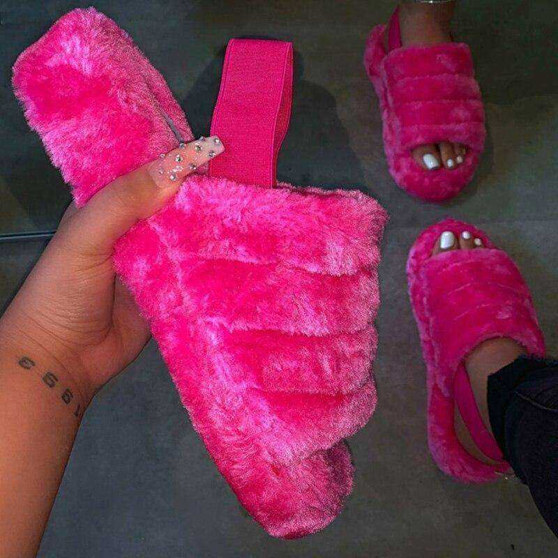 New Women's Indoor Fur Slides Bottom Anti Slip Furry Slippers