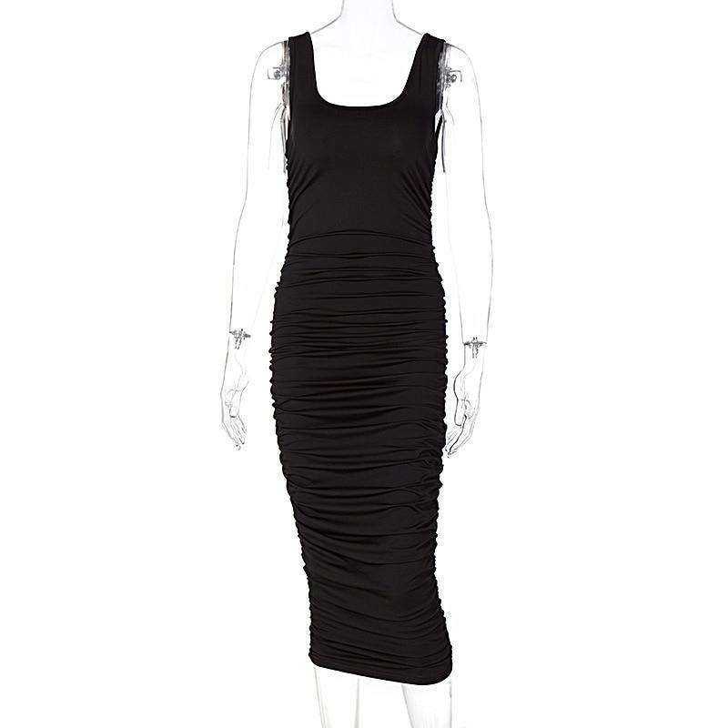 Women Fashion Ruched Sleeveless Skinny Hot Midi Dress