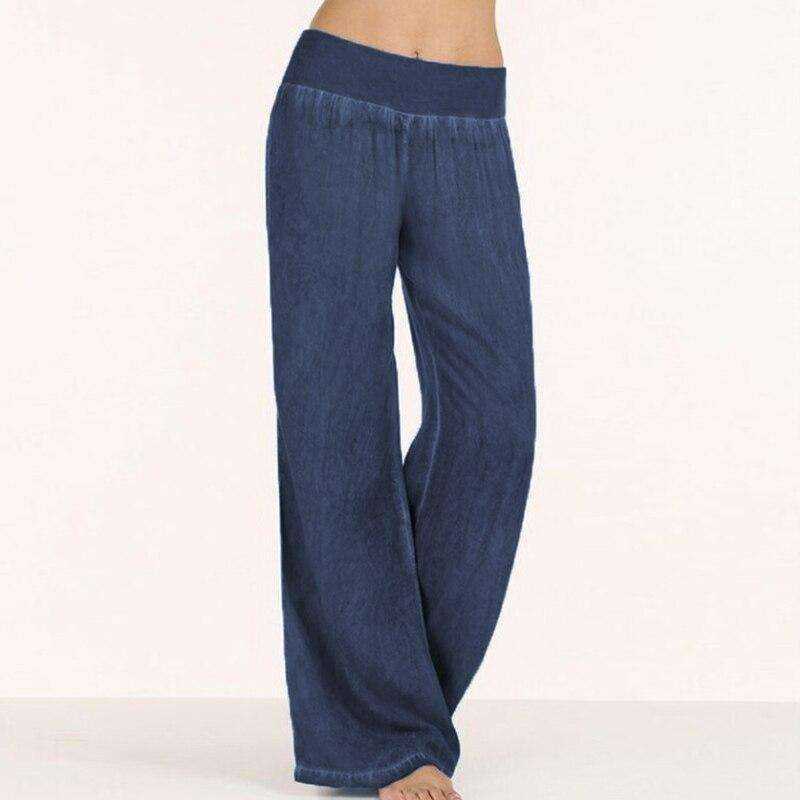 Casual Elastic High Waist Denim Wide Leg Pants