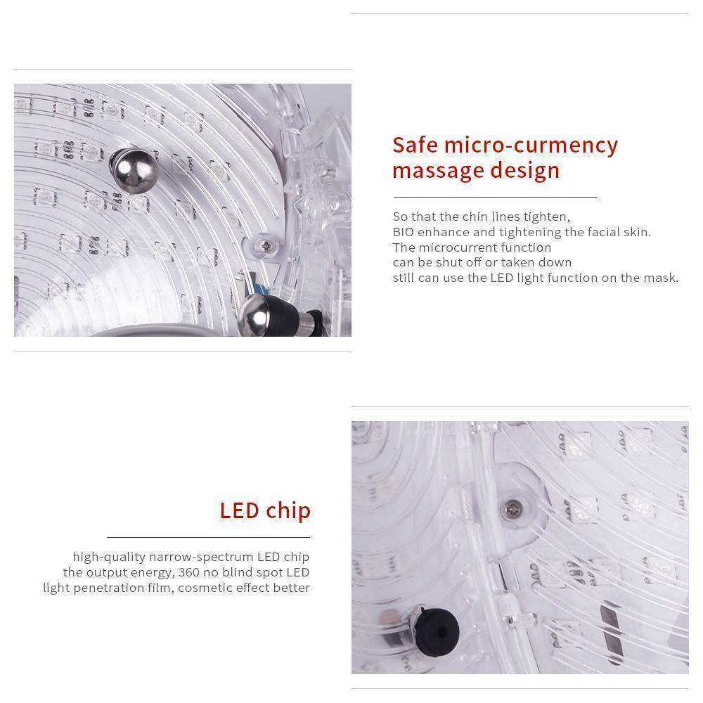 Red light: whitening pale spot,tender skin and anti-wrinkle,repair damaged skin,smooth the fine wrinkles,shrink pores, hyper plasia of collagen.
