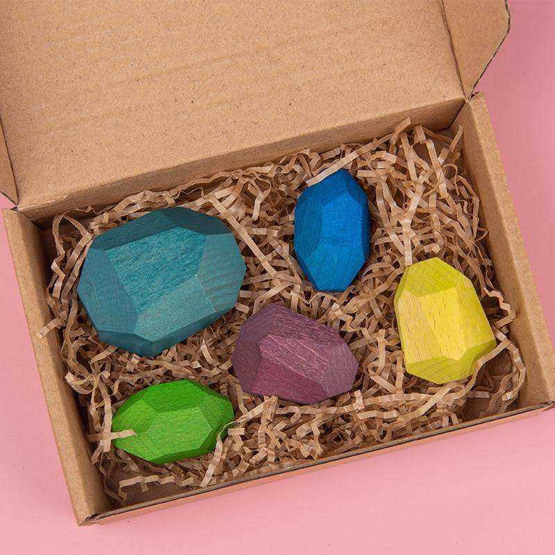 Children's Wooden Colored Stone Jenga Building Block Educational Toy