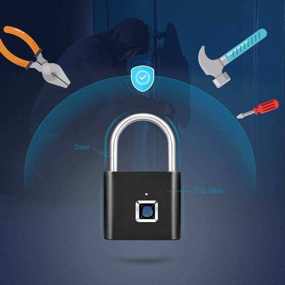 Golden Security Keyless USB Rechargeable Door Lock Fingerprint Smart Padlock