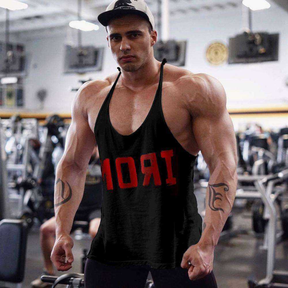 • Muscle Fit; Scoop-Neck; Racerback (Y-Back) ; Thin Shoulder Strap; "IRON" Printed Design