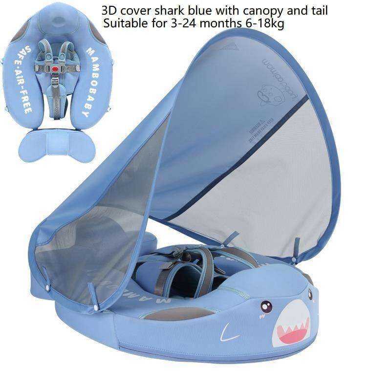 Shark float with canopy :Add removable tail, Prevent baby from flipping