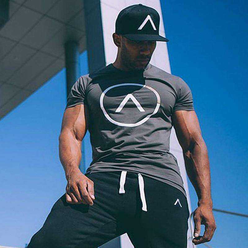 Sports Fitness Fashion Letter Printing Men's Short Sleeve T-shirt