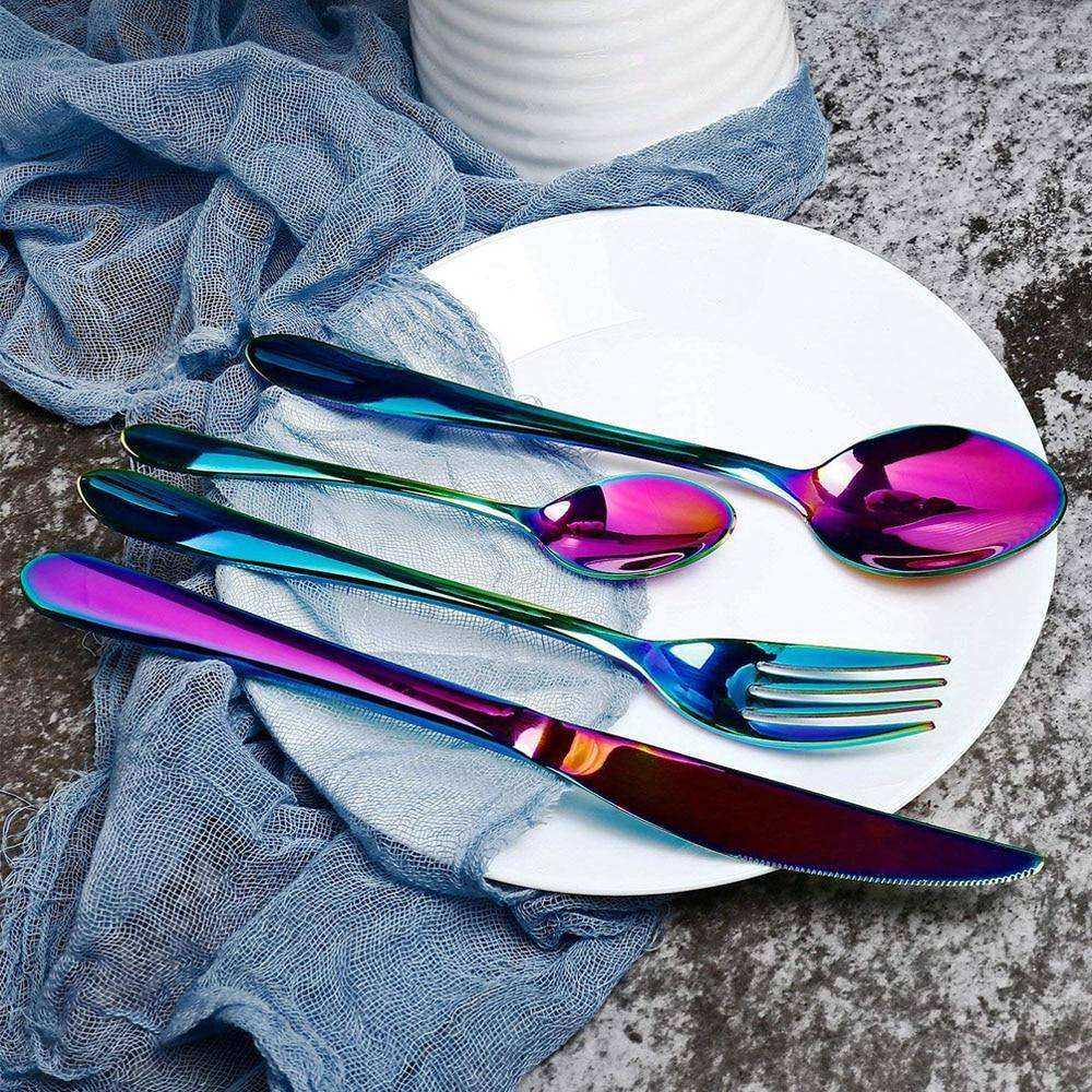24PCS Tableware Flatware Non-fading Cutlery Stainless Steel Rainbow Sets